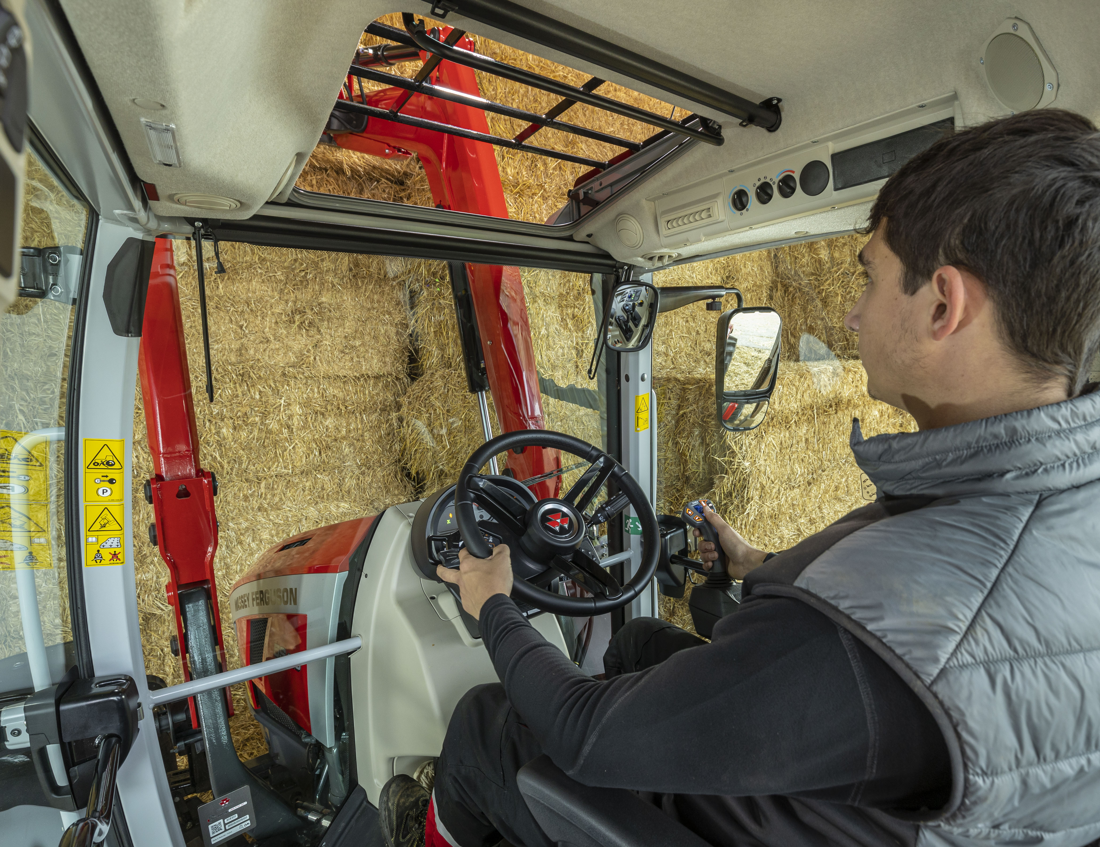 Il s'agit de la caractéristique par excellence du MF 5S: le capot plongeant. Depuis 30 ans déjà, cet ingénieux capot incliné, combiné au tableau de bord élancé, garantit une sécurité accrue. Il garantit une visibilité unique jusqu'à quatre mètres devant le tracteur et minimise les angles morts: