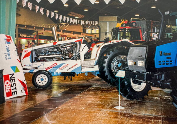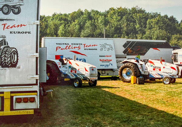 Bien entendu, les pullers ne se contentaient pas d'être exposés, ils participaient également à des événements, comme ci-dessous en août 1997, dont la figure de proue était alors la légendaire équipe Herlevi, qui faisait elle-même partie du Valtra Neste Europe Pulling Team. L'étroite collaboration entre Team Herlevi et Valtra a commencé au début des années 90, lorsque Valtra a servi de fournisseur de moteurs pour les tracteurs de l'équipe.