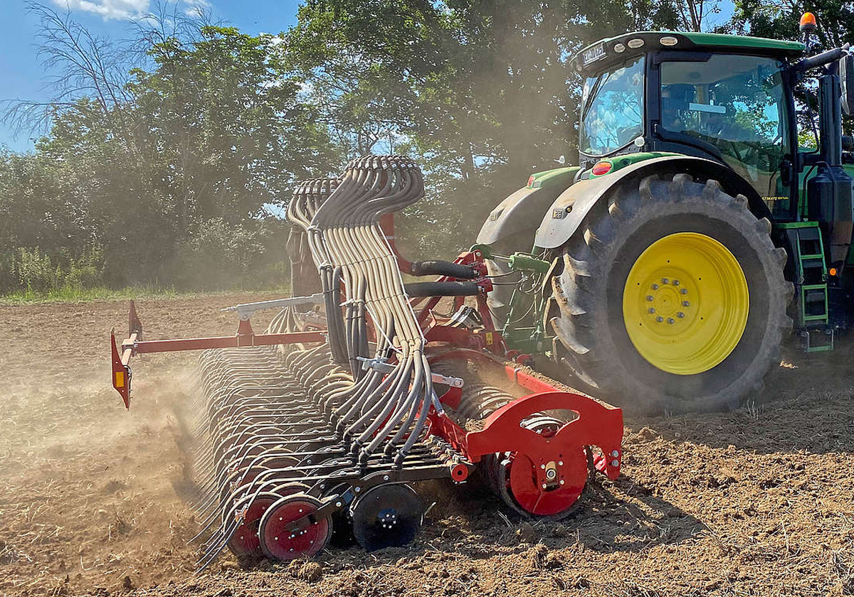 Concernant l’élément semeur du Taro SL proprement dit, HORSCH conserve tout ce qui fait la renommée de l’outil Pronto DC. Il est composé d’un double disque ouvreur symétrique avec roulement interne sans entretien qui garantit une ouverture précise du sillon, un vieillissement optimal du matériel et aucune dérive latérale. Le suivi de sol est assuré par la suspension sur plots élastomères sans entretien avec une pression jusqu’à 120 kg. La levée reste homogène, y compris à vitesse élevée grâce à une mise en terre idéale des graines et un plombage immédiat.