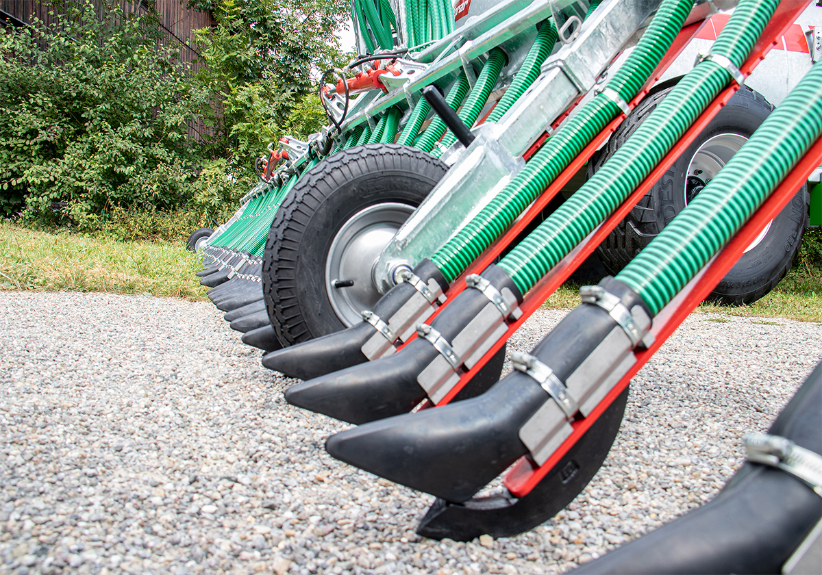 Afin de se conformer à cette obligation, toutes les tonnes à lisier devront à l'avenir être dotées de rampes à pendillards ou à patins permettant une distribution ciblée du lisier sur le sol. Afin de pouvoir contrôler la précision et d'épandre le lisier encore plus efficacement, la société Agrar Landtechnik AG a mis au point son propre épandeur avec rampe à patins SSV pouvant être utilisé en complément des épandeurs avec rampe à pendillards (SV + SVK) qui ont déjà fait leurs preuves pendant de nombreuses années.