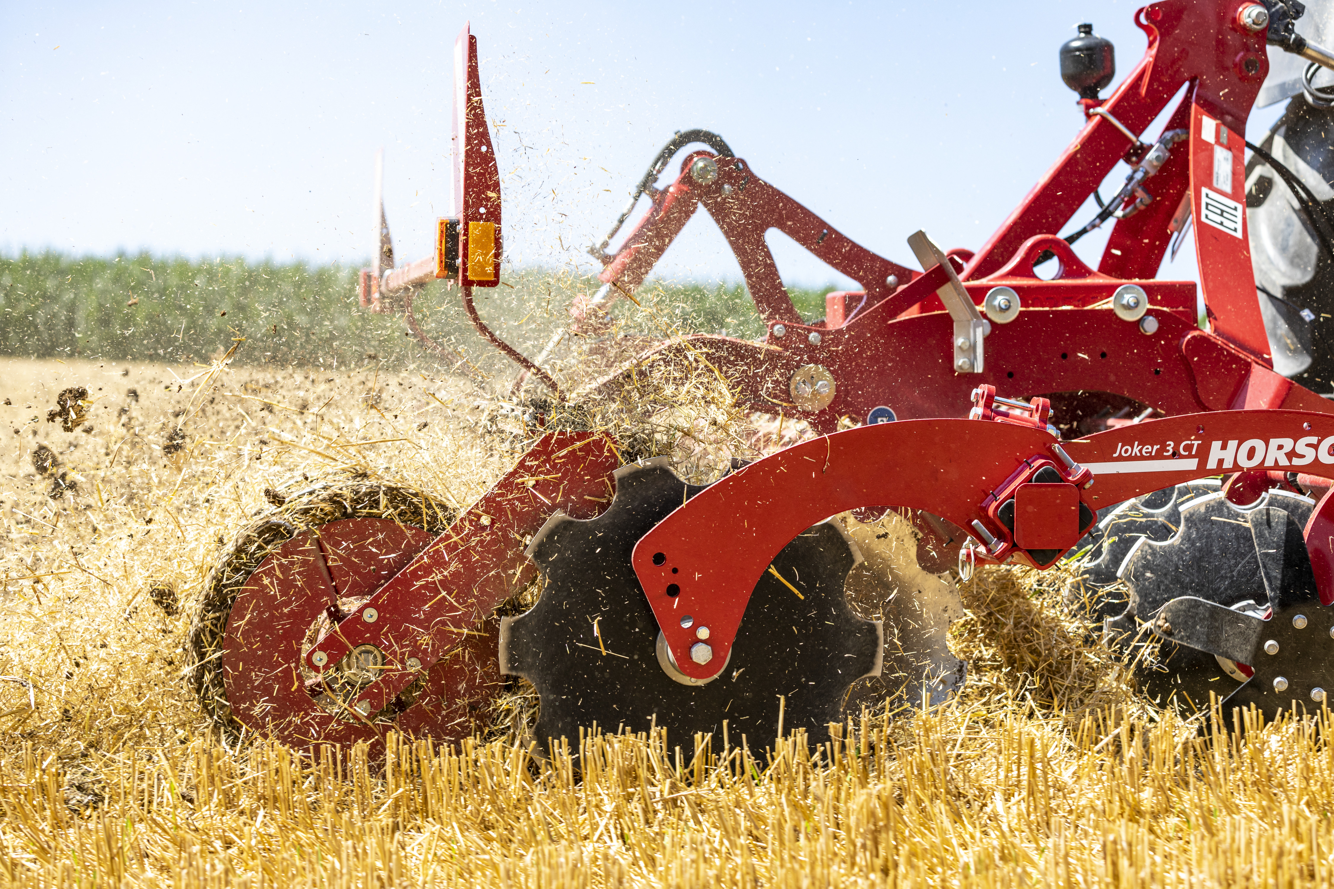 La conception robuste du Joker CT et son fonctionnement simple le rendent particulièrement populaire auprès des agriculteurs. Ces atouts résident dans le mélange intensif des résidus de culture, la réalisation de faux semis et la rupture de la capillarité. Les travaux dans de grandes quantités de pailles ou la destruction de cultures intermédiaires exigent un grand dégagement sous bâti. De ce point de vue, le montage des disques par paires du Joker CT offre une évolution sans bourrages. Il garantit un débit de chantier très élevé grâce à des vitesses allant jusqu'à 20 km/h, tout en limitant la consommation de carburant.