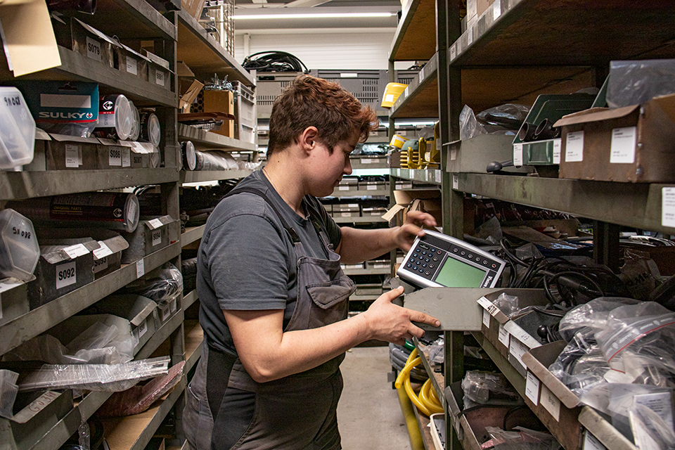 Notre vaste stock de pièces détachées fait également partie du bâtiment. Grâce à lui, nous sommes parés à toute éventualité et pouvons intervenir rapidement en cas de problème.